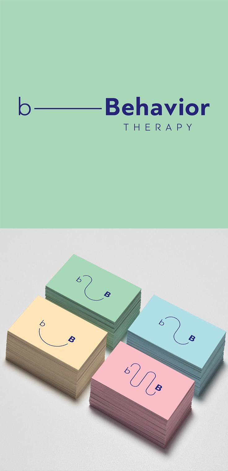 The design is clean, minimalist, and professional, utilizing a muted, cool color palette to convey a sense of calm and therapeutic expertise. The visual language relies on simple lines and subtle iconography (the 'b' and the infinity loop) to represent behavior therapy concepts.