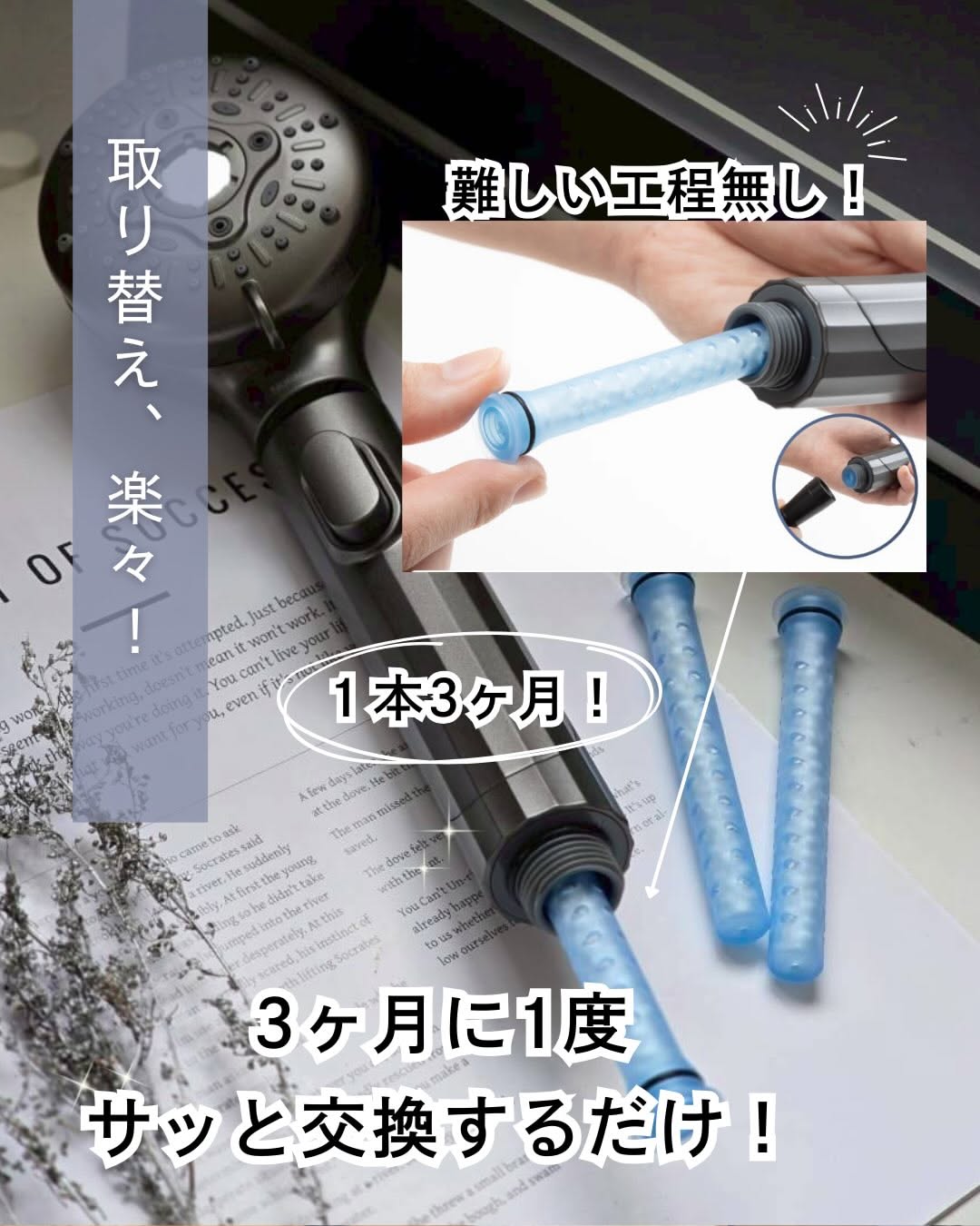The image is a promotional visual for a product, likely related to a reusable or long-lasting item, emphasizing ease of use and longevity. It uses clean, bright lighting to highlight the product components and a clear layout that connects the action (replacement) with the benefit (3 months of use).