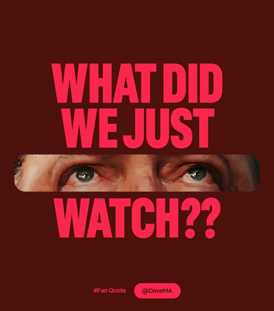 This is a striking, high-contrast graphic featuring a close-up of an eye, overlaid with bold, capitalized text in a vibrant pink/red. The design uses strong typography and a dark background to create an intense, direct, and slightly provocative visual statement.
