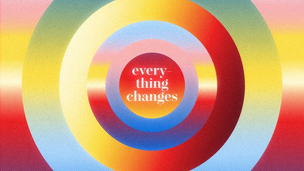 The image features a vibrant, concentric circle design utilizing a gradient of warm and cool colors, creating a sense of depth and movement. The visual language is modern and layered, drawing the viewer's eye inward toward the central text.