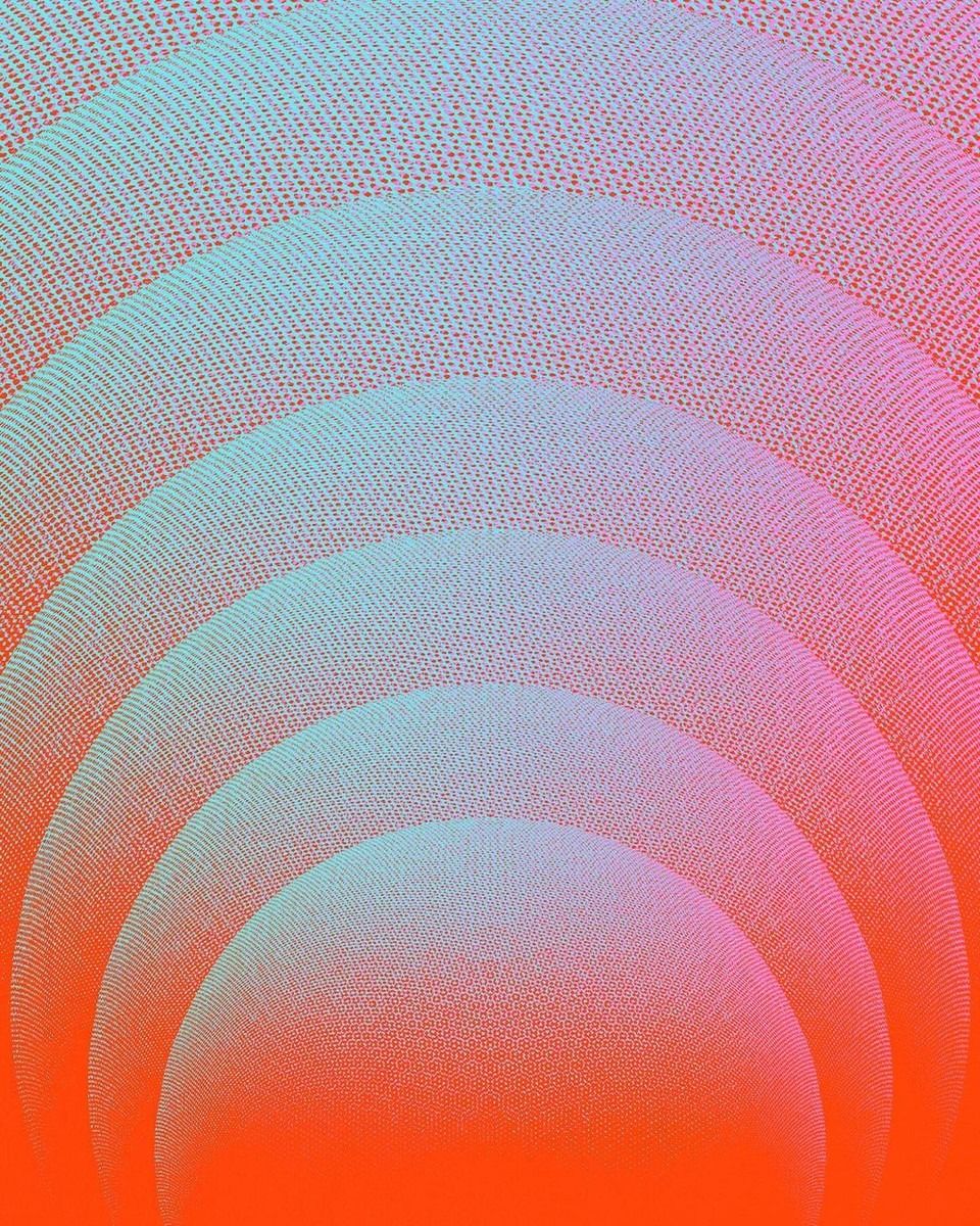 This image features a vibrant, layered abstract design characterized by concentric, wave-like shapes that create a sense of depth and rhythm. The visual language relies heavily on smooth gradients and subtle texture to achieve a soft, almost iridescent effect.