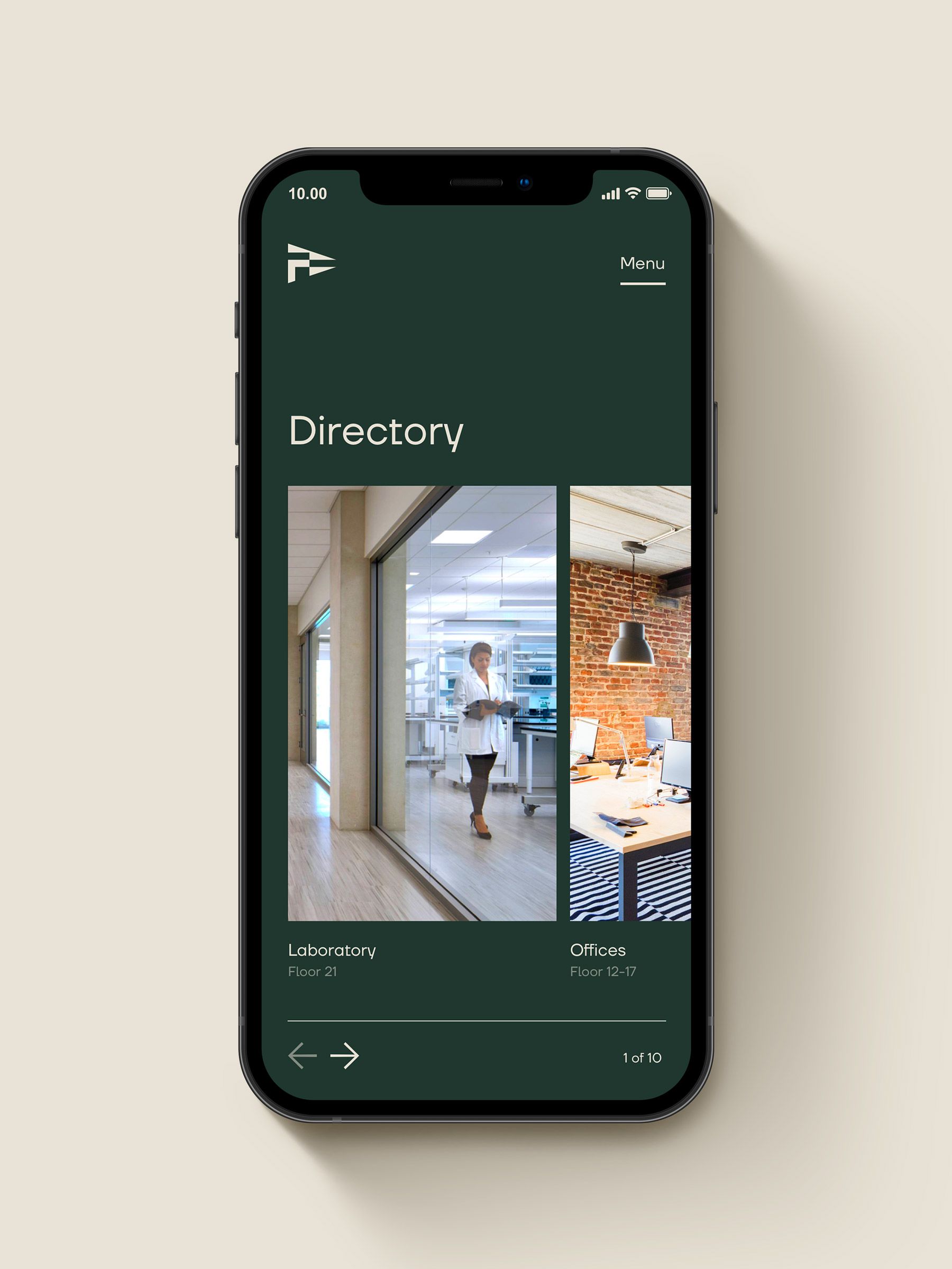 This design employs a sophisticated, clean aesthetic using deep, muted greens and natural earth tones to convey professionalism and organization. The visual language is minimalist and structured, prioritizing clear information hierarchy through ample negative space and subtle depth. The overall feel is calm, trustworthy, and highly functional for internal navigation.