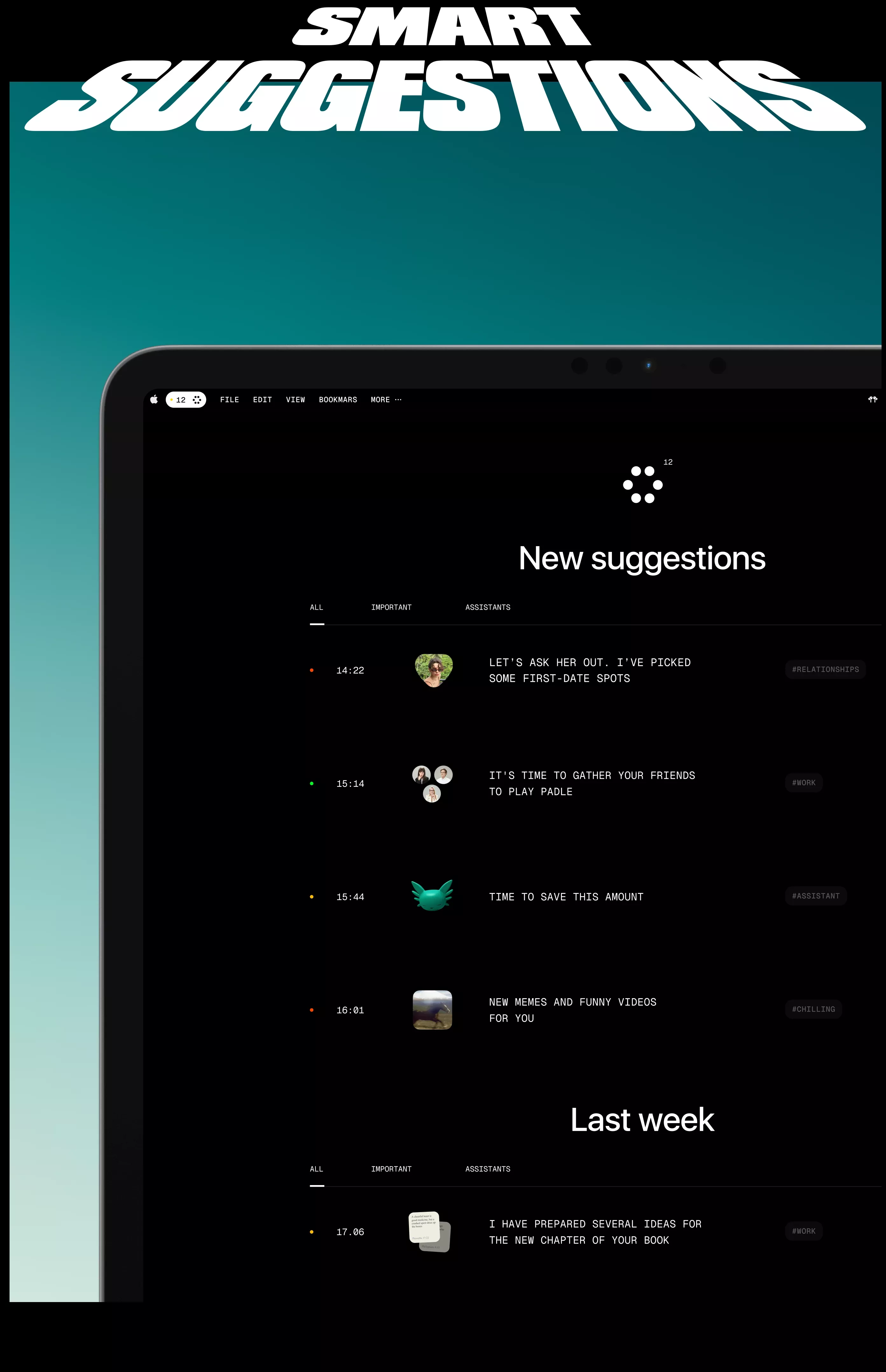 The design features a bold, high-contrast title against a muted teal background, suggesting a modern, perhaps slightly playful or informational application interface. The layout is clean and list-based, typical of a suggestion or content feed.