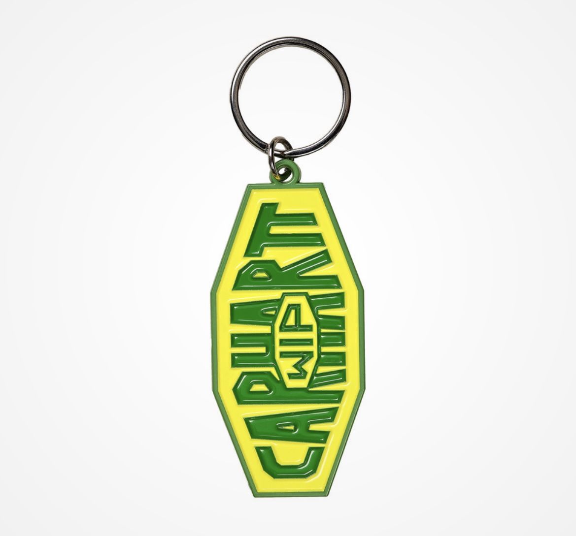 Product design - decorative keychain/charm with playful character design. Small scale product photography with focus on design detail and craftsmanship.