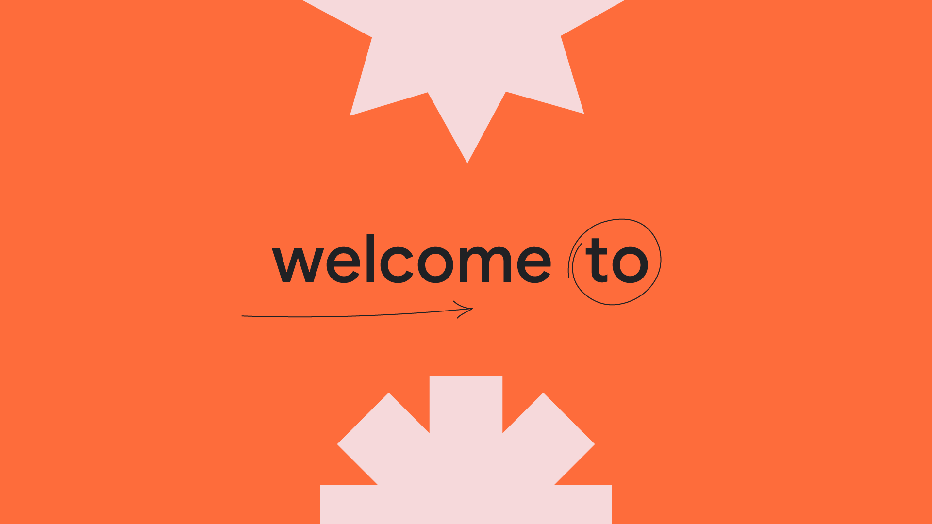 A vibrant, minimalist welcome graphic featuring bold geometric shapes and a warm color palette. The design uses simple typography and decorative star elements to create an inviting, friendly aesthetic with a modern, flat design approach.