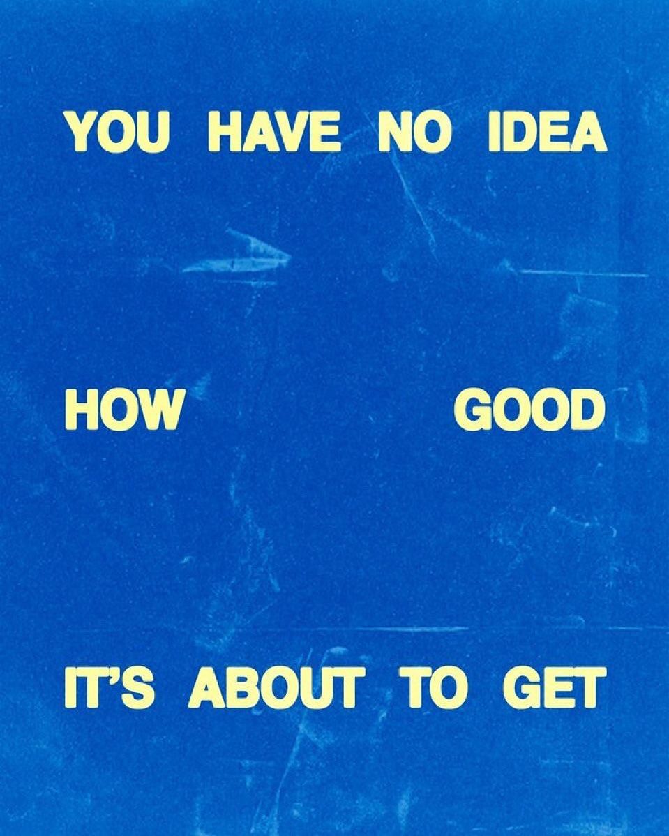 The image features stark, capitalized text set against a vibrant, solid blue background. The design is minimalist and direct, relying on high contrast between the white text and the deep blue field to convey a sense of urgency or direct communication.