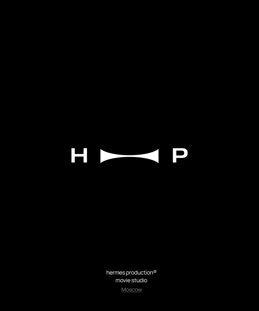 Hermes Production logo and branding materials featuring circular emblem with film reel aesthetic and typography