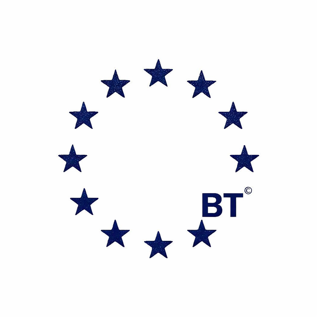 The image features a minimalist, circular arrangement of dark blue stars forming a wreath or border around the initials 'BT'. The design is clean, symmetrical, and uses negative space effectively to create a balanced emblem.