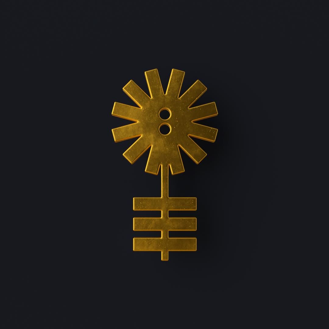 This image presents a minimalist graphic emblem characterized by precise geometric line work, combining a radiating circular motif with a linear element below. The design utilizes high contrast and clean lines to create a sense of elegance and structure.