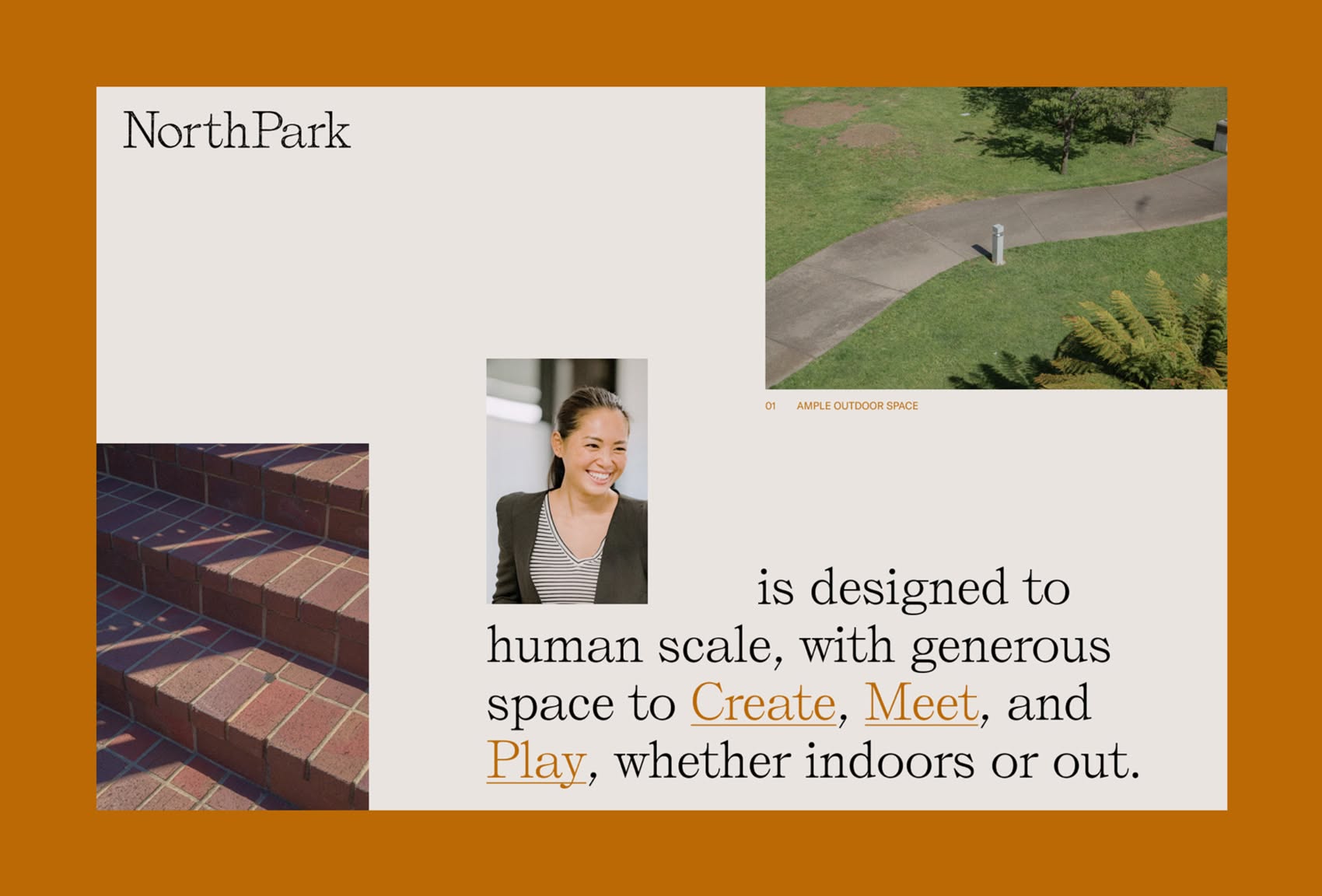 The design utilizes a warm, earthy palette combined with clean typography to convey a sense of grounded sophistication and welcoming invitation. The visual language balances photographic elements of nature and architecture with clear, declarative text to promote an experiential concept.