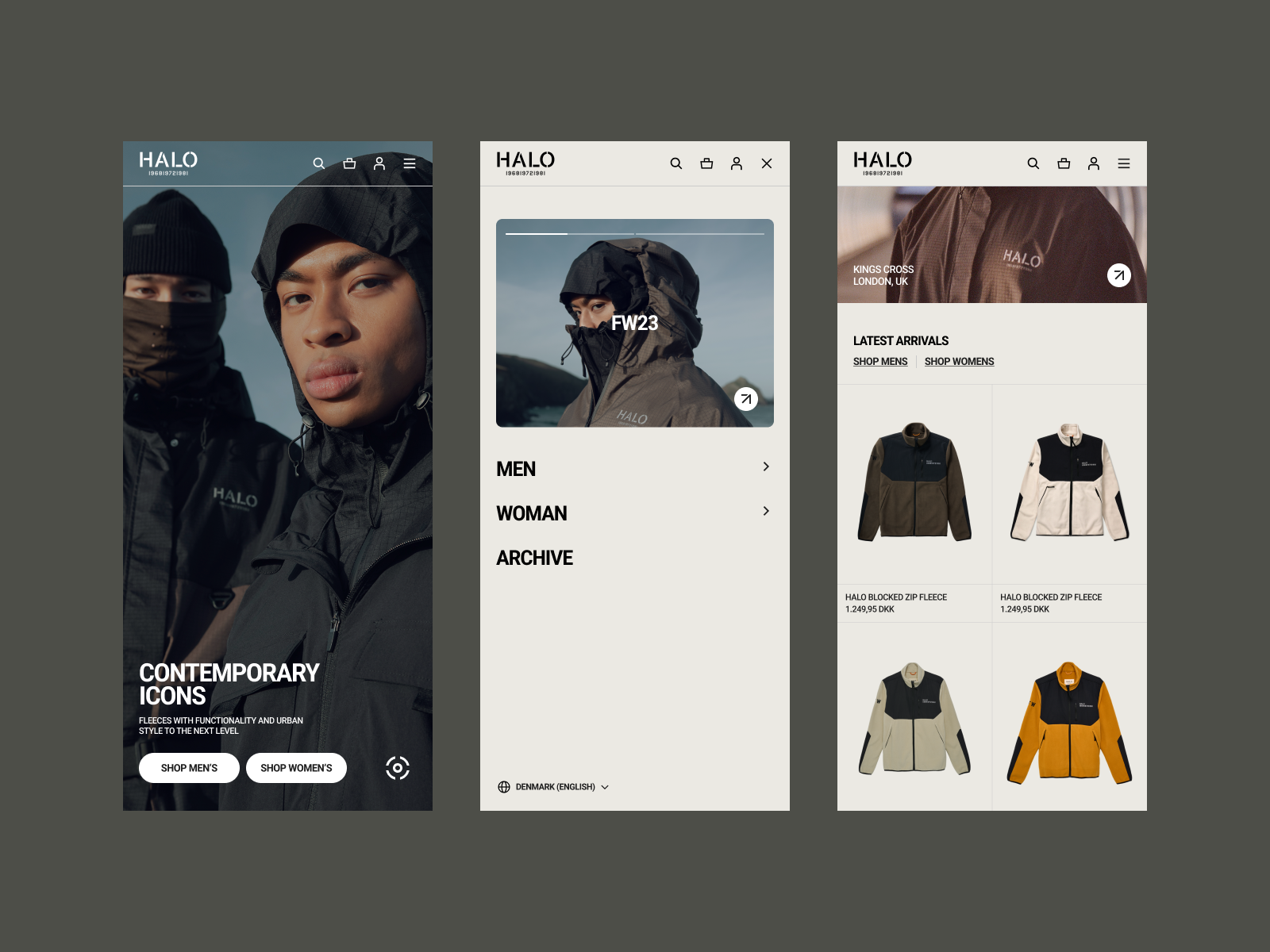 The design employs a sophisticated, minimalist aesthetic characterized by high-contrast photography and muted earth tones. The visual language is clean and editorial, focusing heavily on product presentation and creating a sense of refined, high-end simplicity.