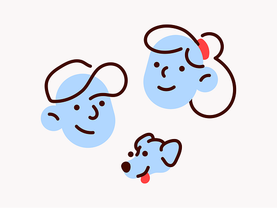 This image features a set of simple, hand-drawn character illustrations rendered in a friendly, minimalist style. The visual language relies on loose, sketchy outlines and solid color fills to create a whimsical and approachable aesthetic. The overall feel is gentle and innocent, emphasizing warmth and simplicity.