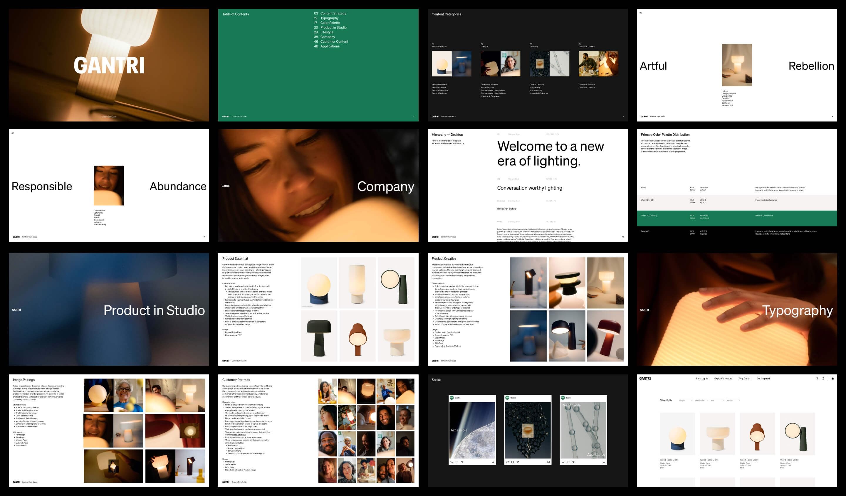 The image displays a collection of clean, modern, and professional UI/UX design mockups, characterized by minimalist layouts, ample white space (or dark space), and a focus on high-quality photography or abstract visuals. The overall visual language is sophisticated, corporate, and contemporary.