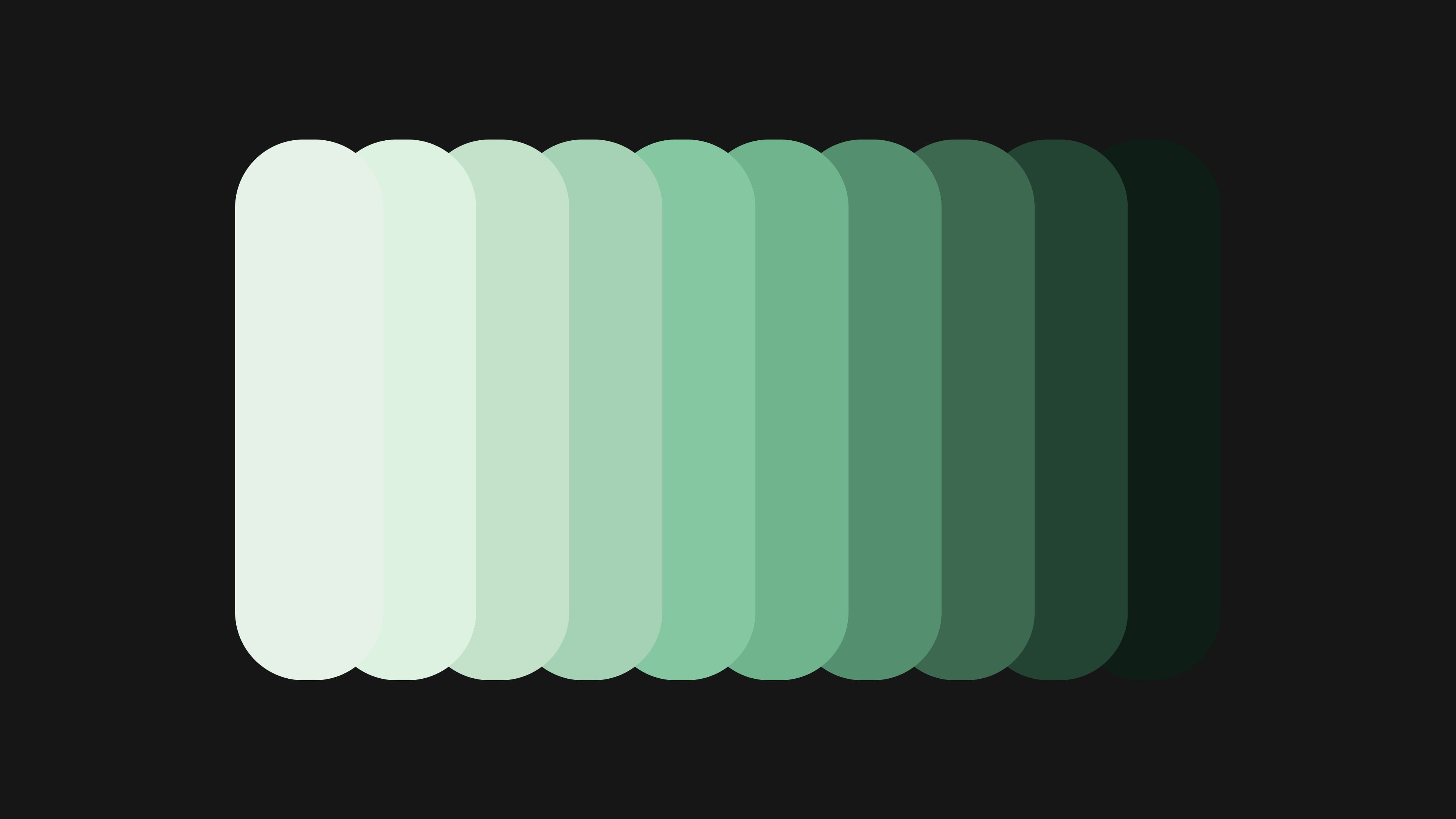 This image features a horizontal gradient or series of vertically stacked, slightly rounded rectangular bars, suggesting a modern, clean interface element or data visualization. The subtle shift in color from light mint green to dark forest green creates a smooth, progressive visual flow.