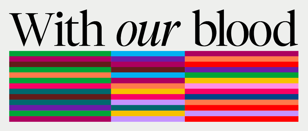 The image features a strong, horizontal striped pattern beneath clear, serif typography, creating a bold and impactful visual statement. The design uses a vibrant yet organized palette to convey a sense of unity or diversity.