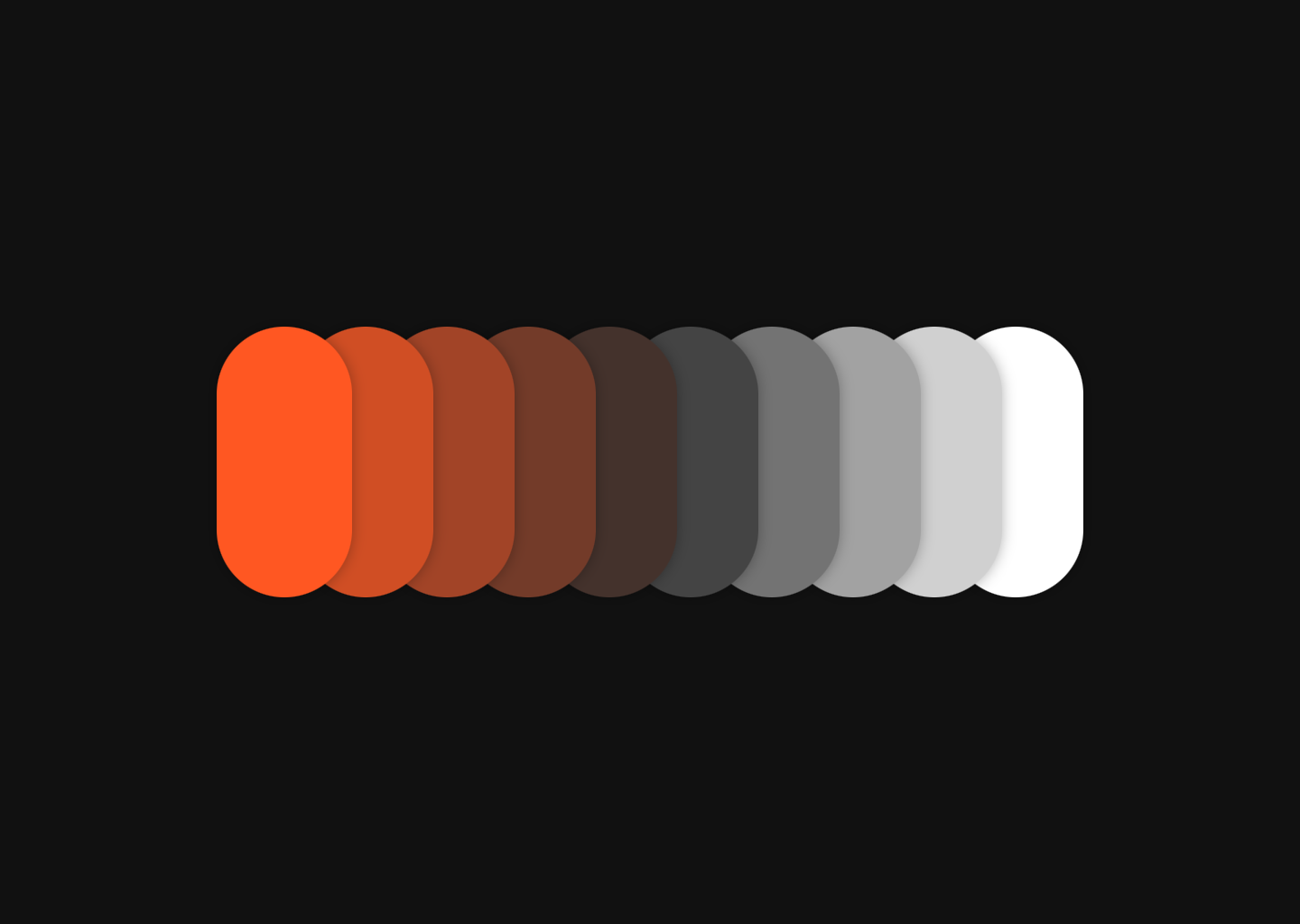 This design features a horizontal series of color-graded indicators or buttons set against a stark black background. The visual language relies on a smooth, subtle transition from warm orange to cool gray, creating a sense of progression or scale.