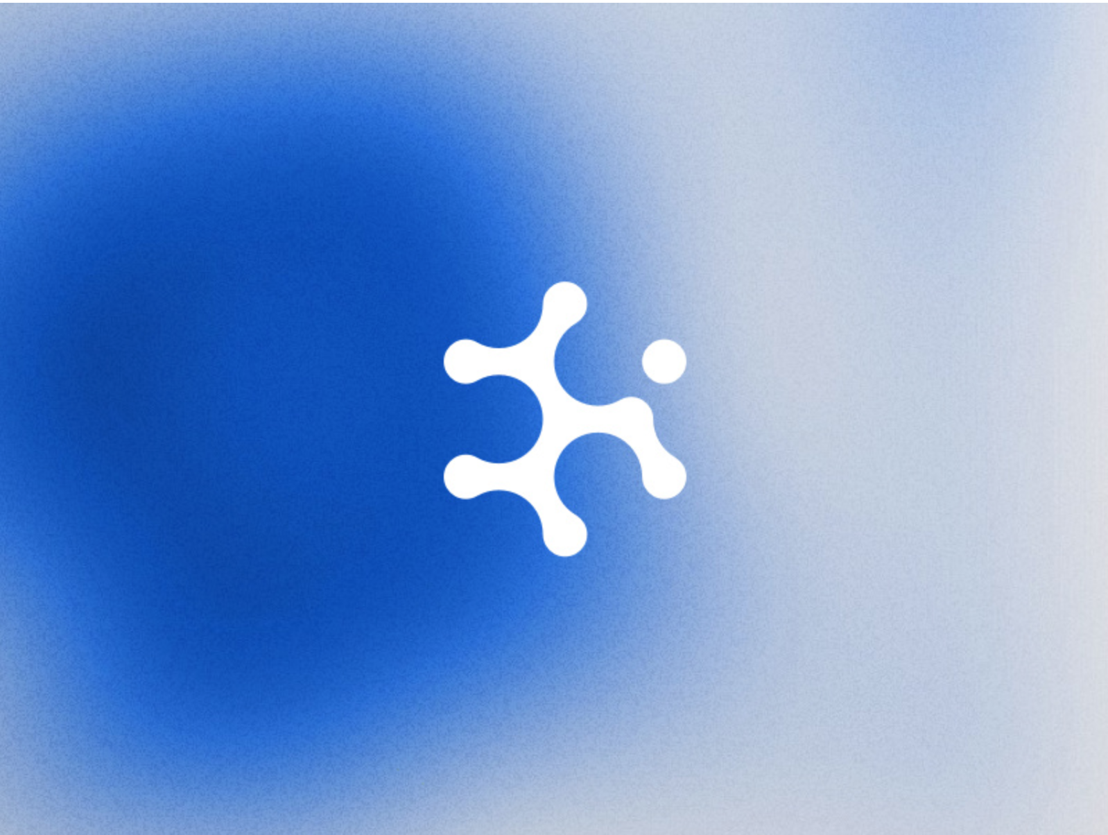 A minimalist design featuring a white molecular or network icon centered against a soft, radial gradient background transitioning from deep blue to light gray. The clean, modern aesthetic conveys connectivity and innovation through simple geometric forms.