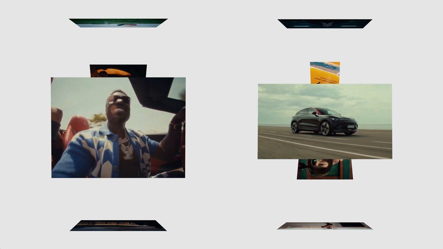 This montage blends lifestyle portraiture with automotive photography, creating a curated visual narrative that is both casual and aspirational. The design uses photographic crops and fragmented layouts to juxtapose human subjects and luxury vehicles in a modern, cinematic context.
