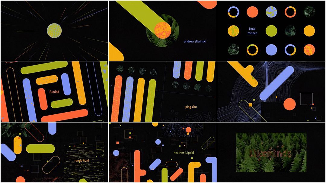 This collection of visuals exhibits a modern, abstract, and digital aesthetic characterized by bold geometric shapes, vibrant gradients, and luminous lines against a dark background. The design leans heavily into generative or data-driven visual language, suggesting innovation and high-tech concepts.