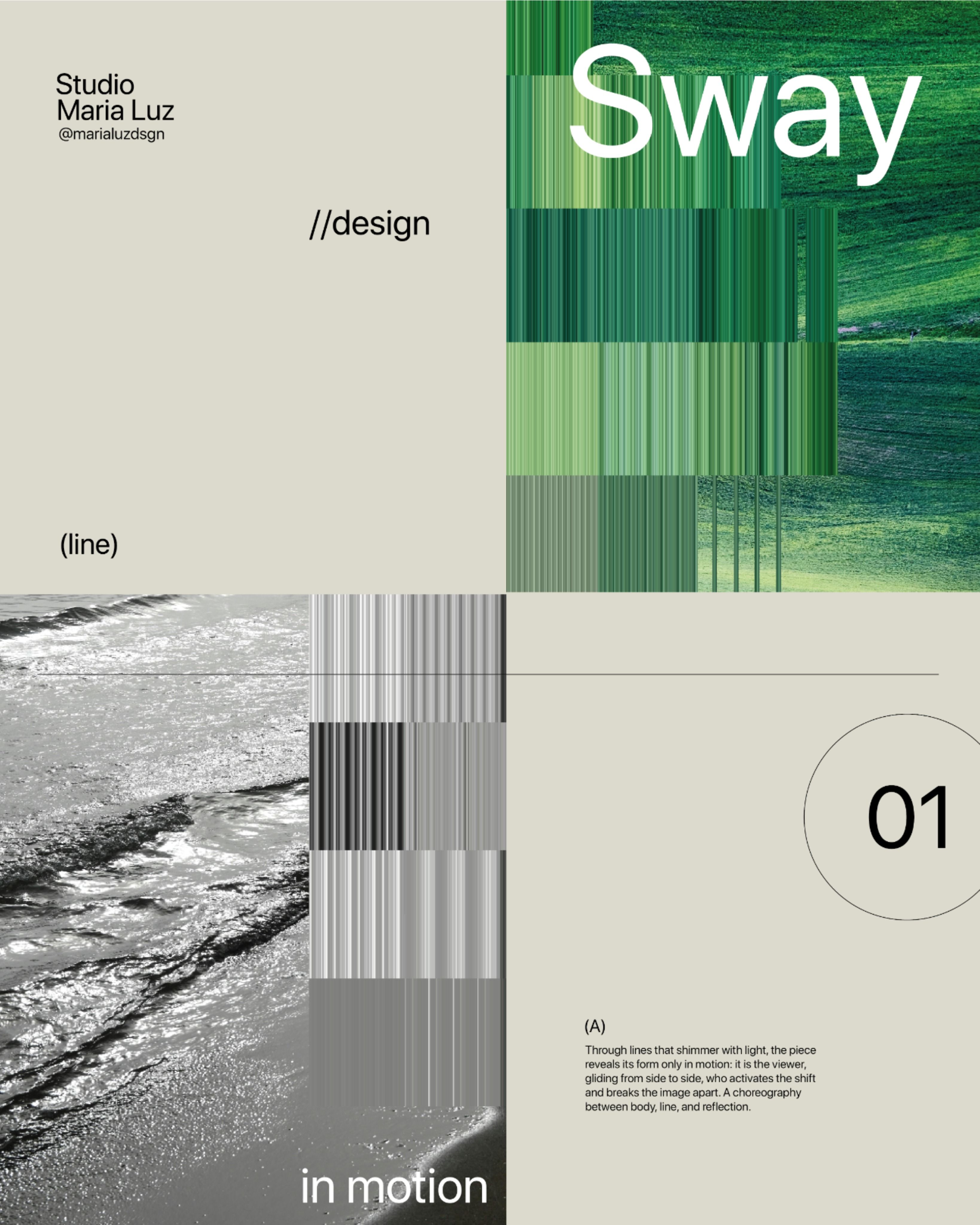 This is a highly refined, minimalist visual exploration focusing on the concept of 'line' and 'motion,' utilizing subtle color gradients and textured vertical bars. The design successfully balances abstract visual elements with clear informational labels, creating a sophisticated and dynamic mood.