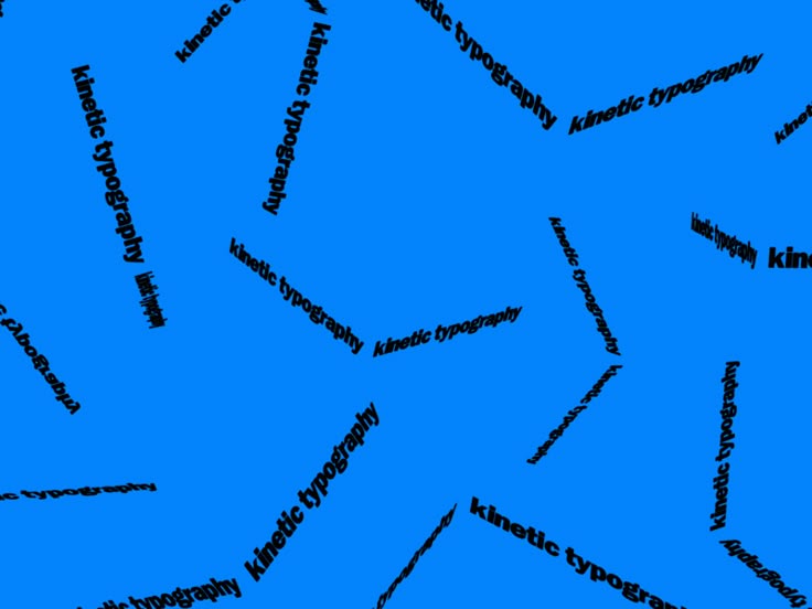 This image features a dense, repeating pattern composed entirely of the phrase 'kinetic typography' scattered across a vibrant blue background. The visual language is highly typographic and abstract, creating a dynamic texture through the random distribution of text elements.