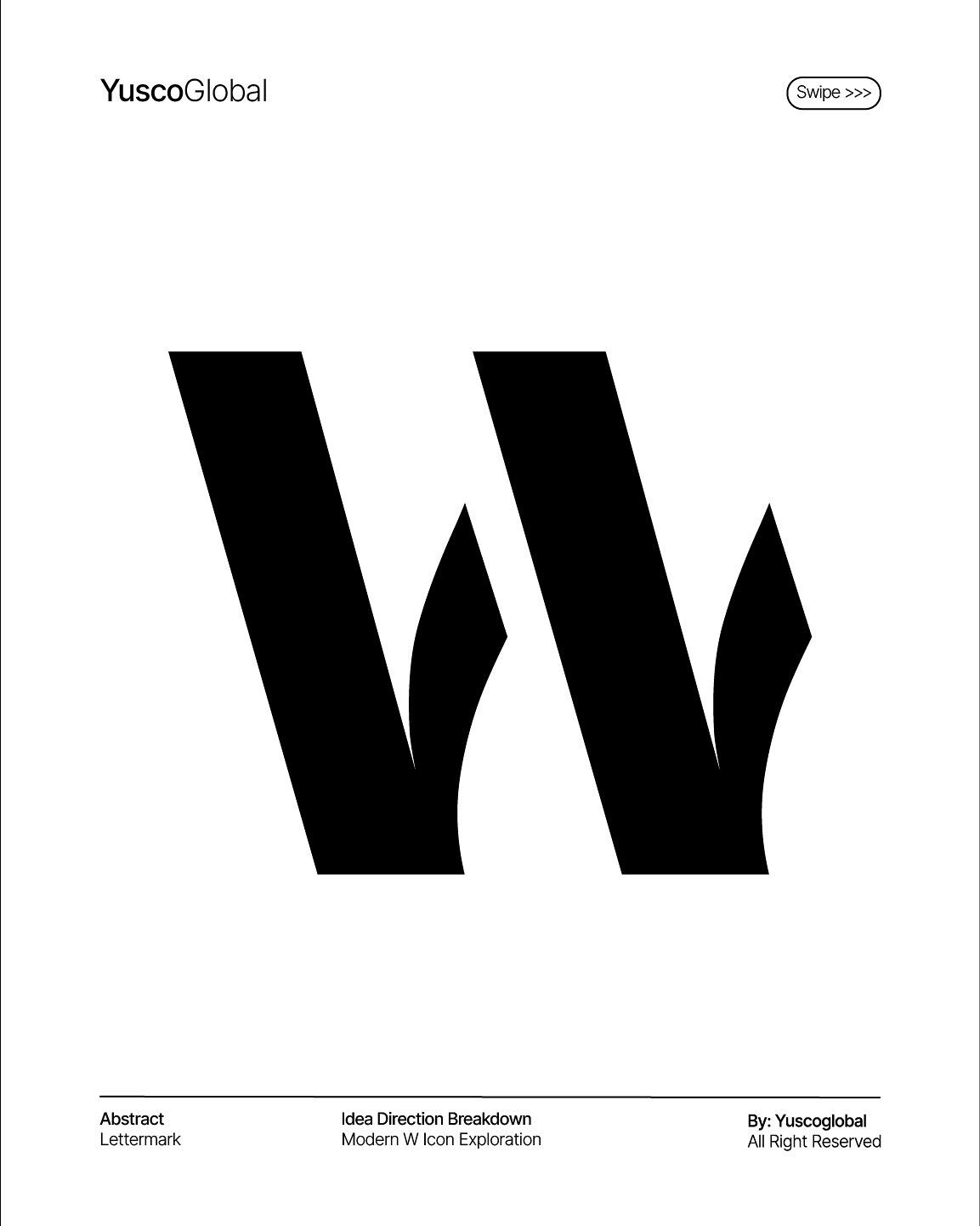 A minimalist abstract lettermark featuring a stylized 'W' composed of geometric black shapes with dynamic internal angles, set against a clean white background. The design demonstrates sophisticated use of negative space and angular forms to create a modern, corporate identity for YuscoGlobal.
