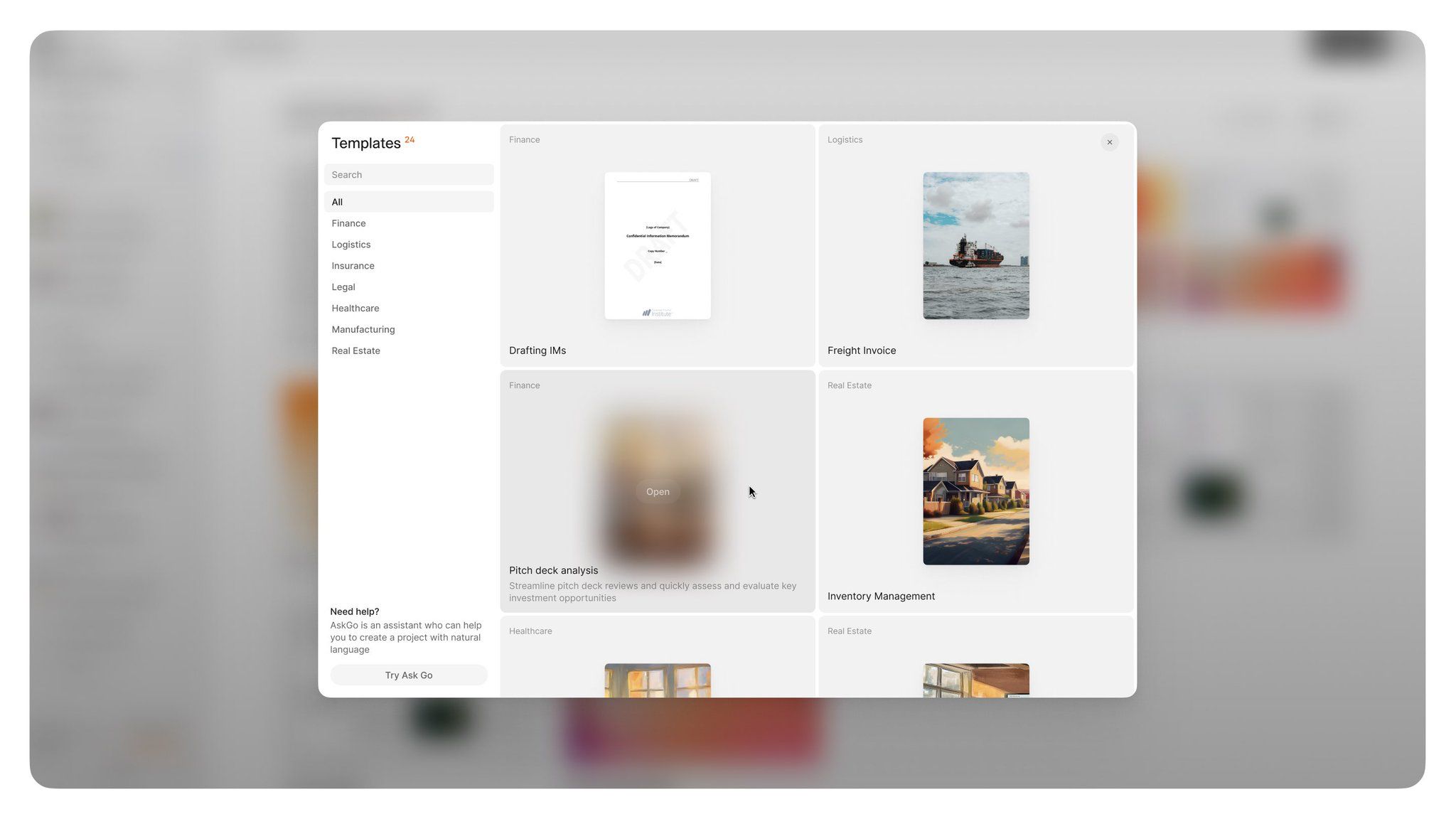 The image displays a clean, professional interface for managing templates, characterized by a minimalist and organized layout. The design utilizes ample white space and subtle shading to create a modern, functional, and accessible user experience.