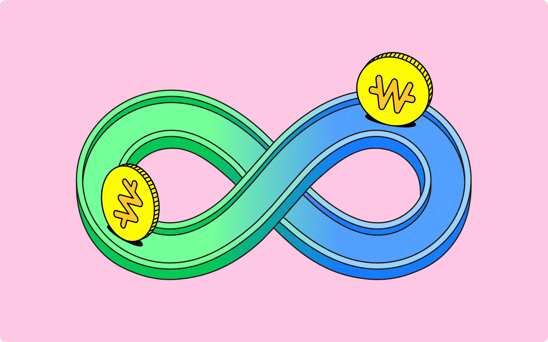 This is a vibrant abstract illustration featuring an infinity loop rendered in smooth, continuous lines. The design utilizes soft gradients and distinct color separation to create a clean, modern visual statement with conceptual depth.
