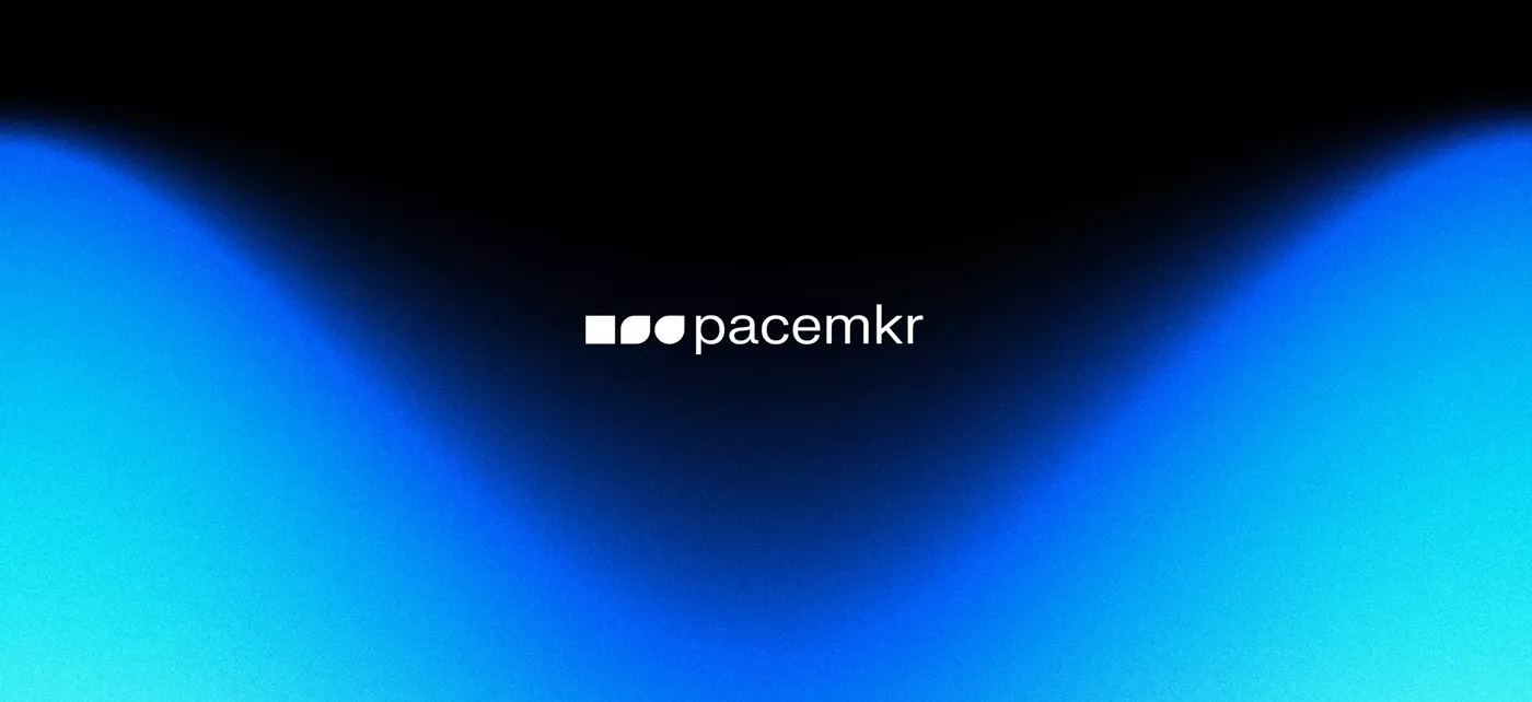 The image features a minimalist, dark background dominated by soft, luminous blue gradients that create an inverted 'V' or wave shape. The design is clean and modern, utilizing negative space effectively to draw focus to the centered logo.