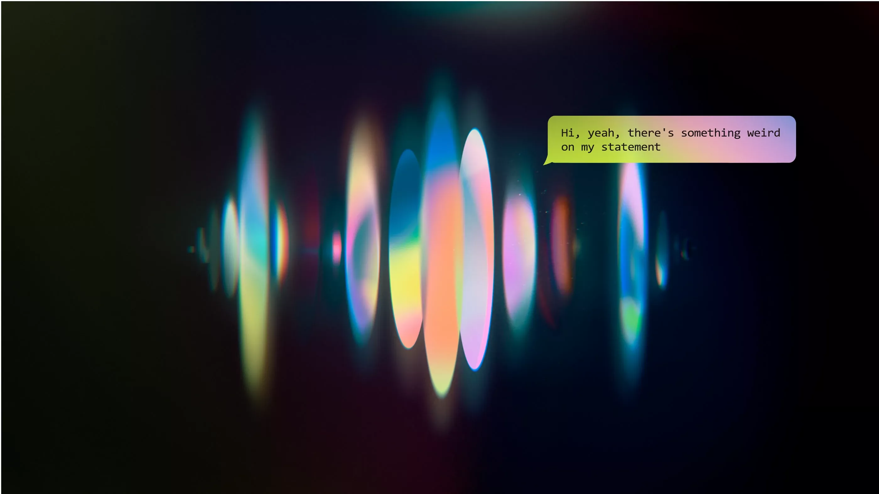 The image features an abstract, vibrant light spectrum effect resembling sound waves or an equalizer display against a dark background. The visual language is fluid and luminous, suggesting digital audio manipulation or an ethereal presence.
