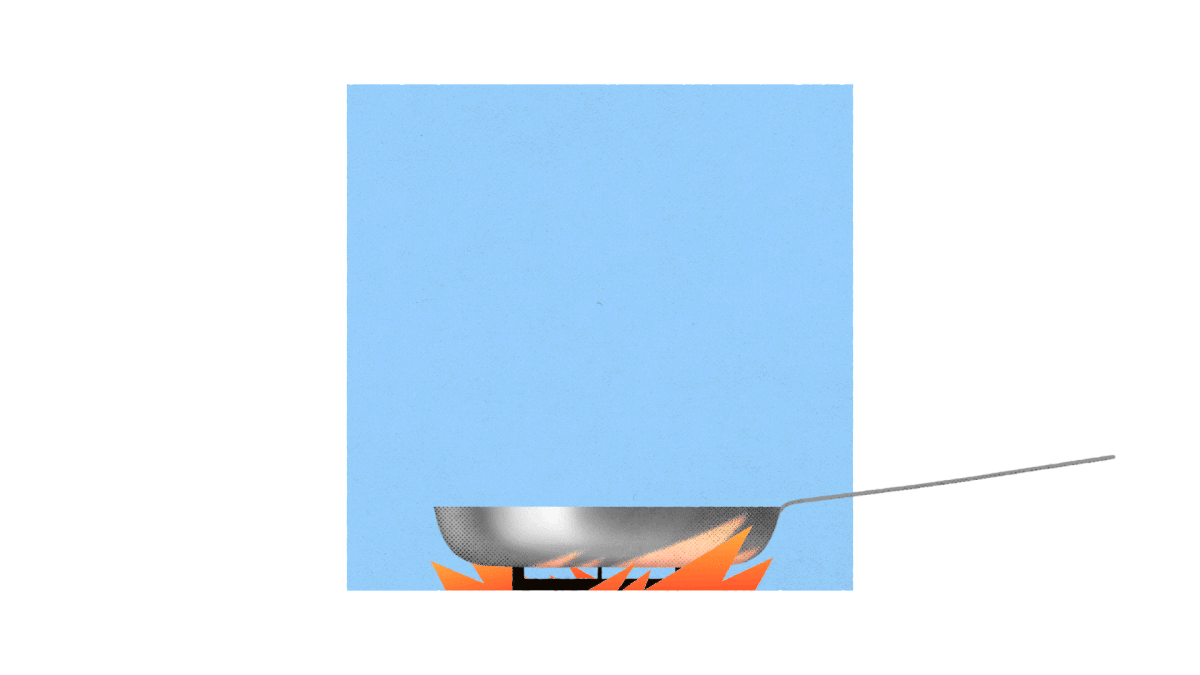 A minimalist composition featuring a metallic bowl with orange accents positioned against a soft blue rectangular background. The design employs clean geometric shapes and a restrained color palette, creating a modern, product-focused aesthetic with subtle depth through metallic highlights.