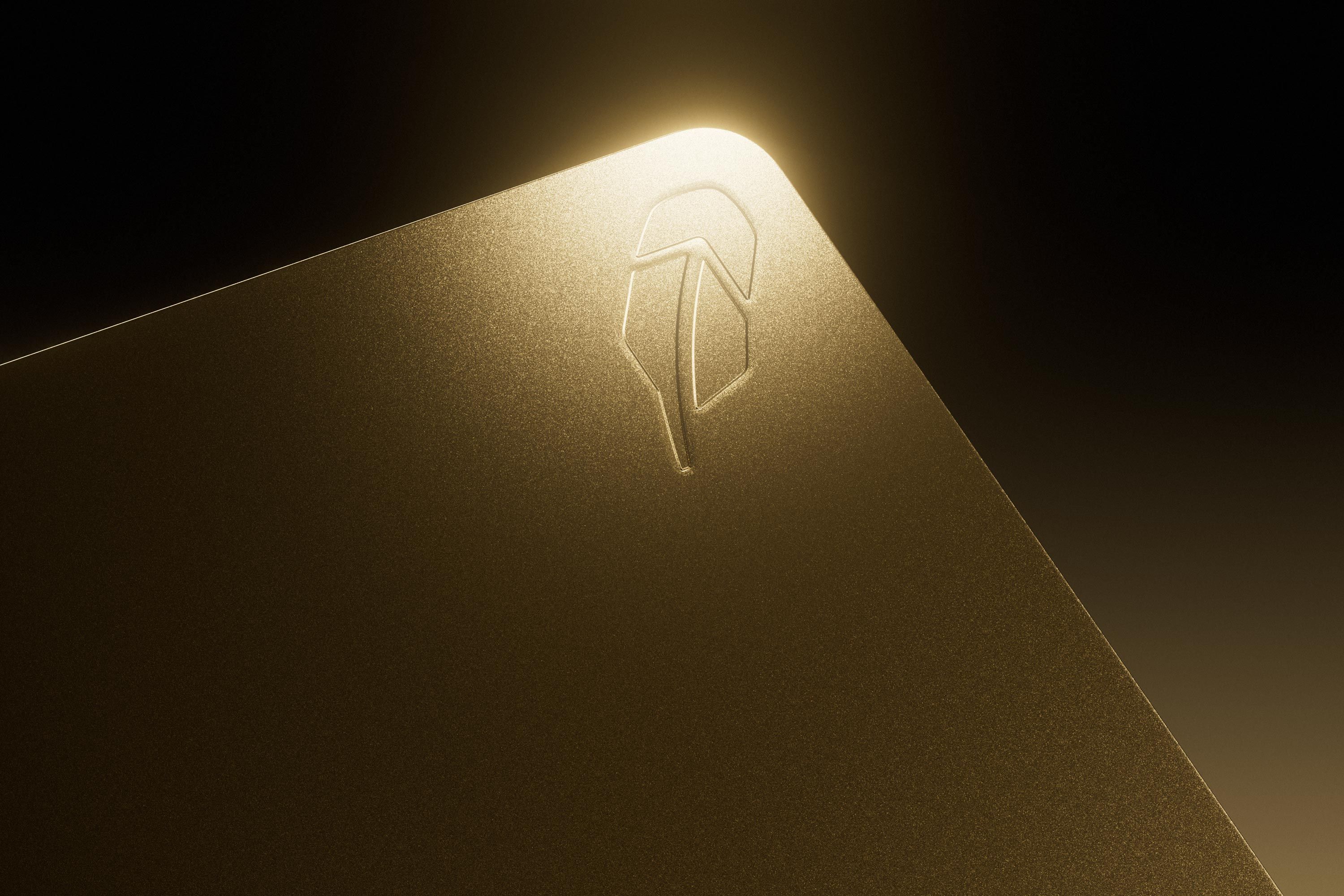 This image depicts a metallic tag attached by a chain, suggesting an identification badge or key. The design is minimalist yet functional, relying on the contrast between the shiny metal and the matte background to draw attention to the embossed lettering.