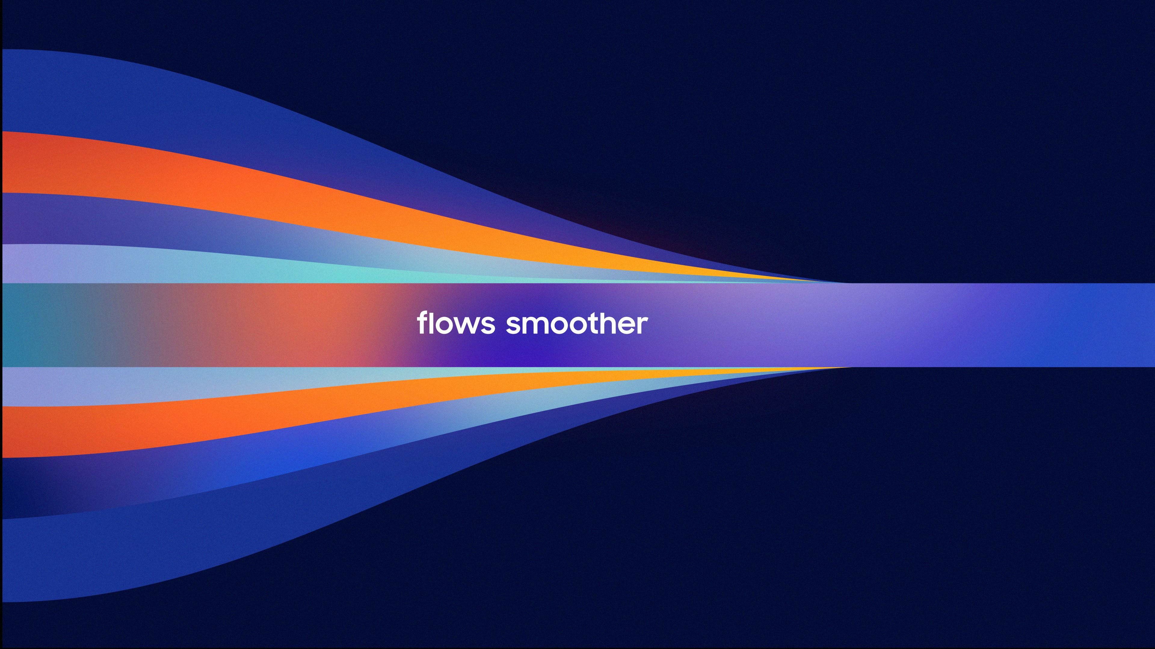 This image features a smooth, gradient flow of colored bands across a dark background, visually emphasizing the concept of smoothness and transition. The design is modern and abstract, relying heavily on color blending to create depth and movement.