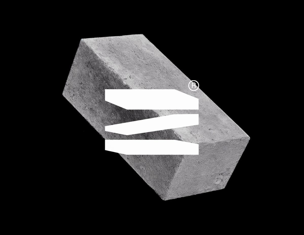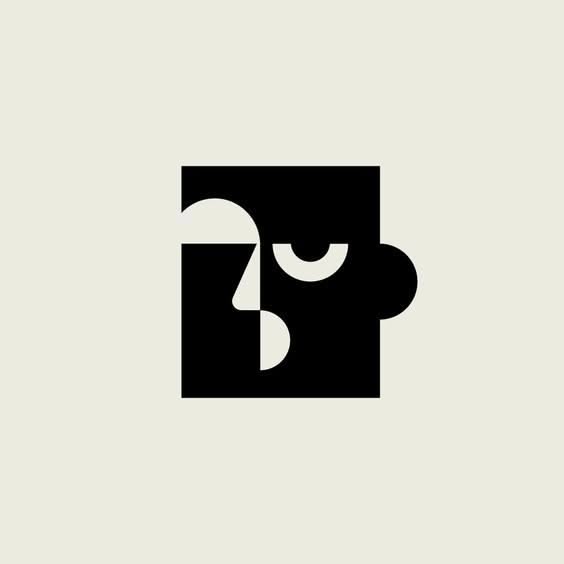 This design utilizes strong geometric shapes and negative space to create a sophisticated, abstract mark. The visual language is clean and modern, relying on the contrast between solid black forms and a soft, neutral background. It conveys a sense of refined simplicity and contemporary elegance.