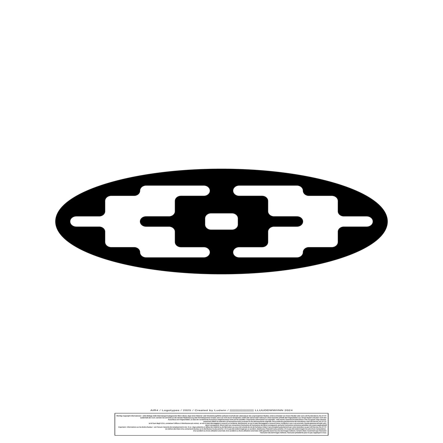 This is a highly minimalist and geometric abstract design featuring a solid black oval shape with internal negative space cutouts. The structure suggests connectivity, links, or stylized bars, creating a sense of precision and modern balance.