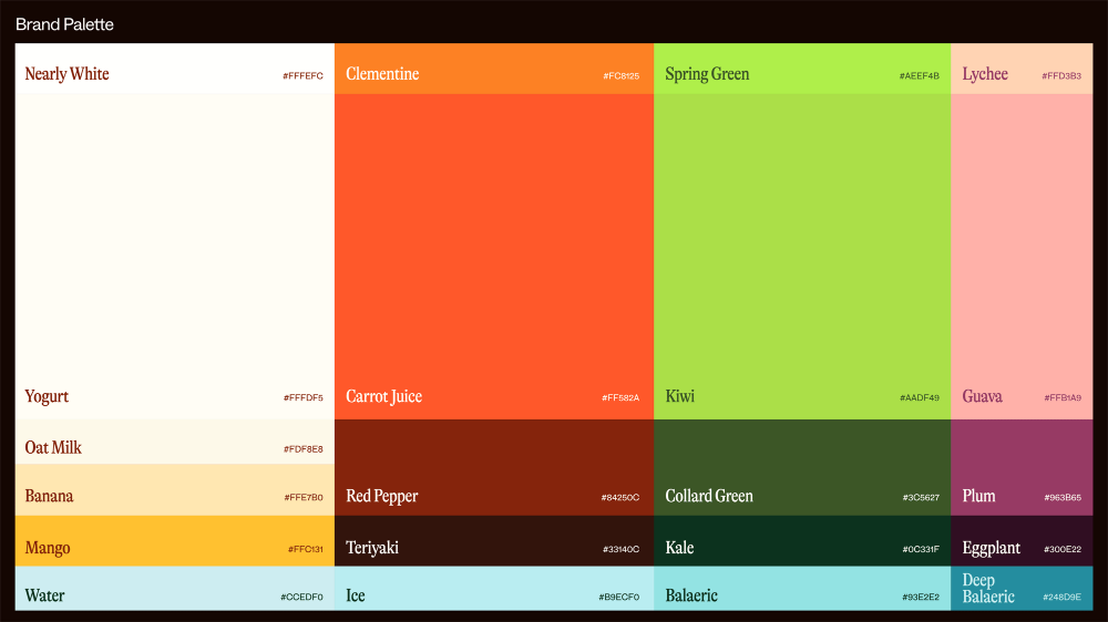 This image presents a clean, organized palette of food or beverage colors, utilizing a simple grid structure to display various named shades. The design is highly functional and relies on clear color blocking for easy identification.