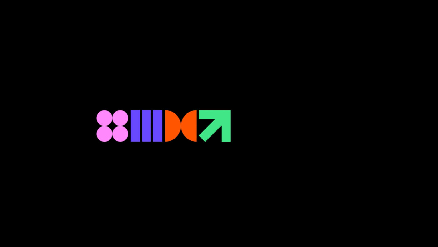 A minimalist, geometric logo composition featuring abstract modular shapes in vibrant neon colors against a black background. The design uses bold, pixelated forms arranged horizontally to create a contemporary, tech-forward visual identity with a playful yet professional aesthetic.