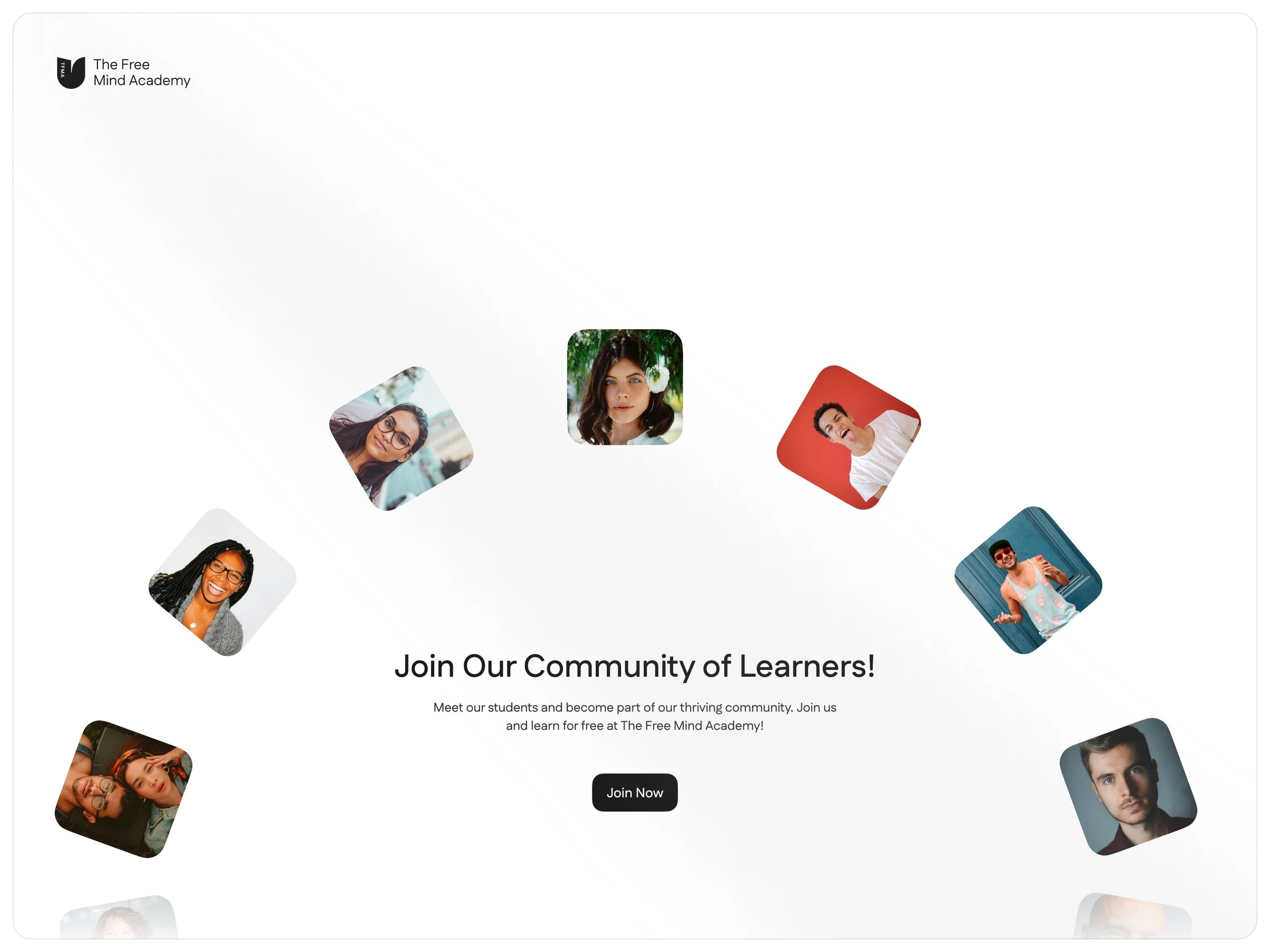 The design is clean, minimalist, and professional, utilizing a white background to emphasize the diverse user profiles presented as small, square images. The layout is sparse and organized, focusing attention on the call to action in the center.