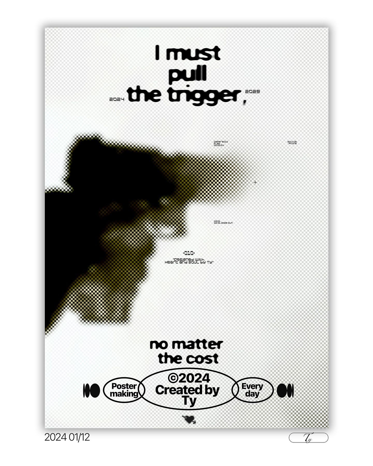 This is a stark, high-contrast typographic design featuring bold, distressed, hand-drawn lettering that conveys a sense of urgency or raw impact. The composition is vertically stacked and slightly irregular, giving it an imperfect, gritty texture.