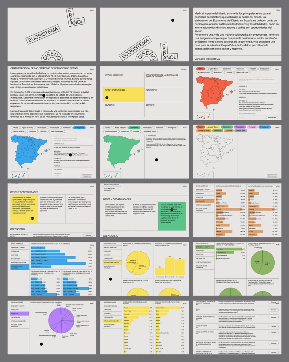 The image displays a professional, data-heavy report or publication layout characterized by a clean, modern, and organized grid structure. It uses ample white space to separate distinct sections of statistics and text, conveying a sense of authority and detailed information.