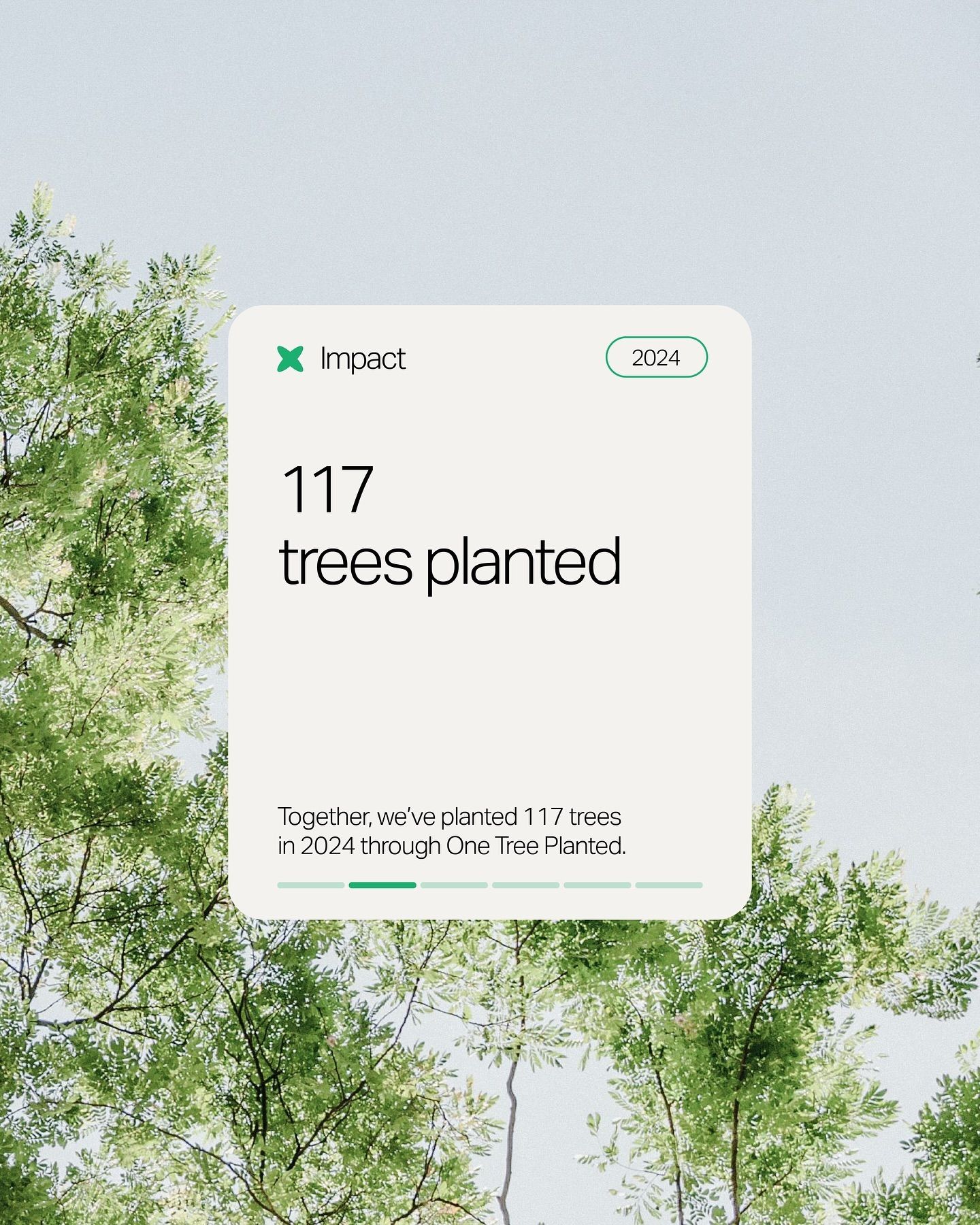 The image features a clean, minimalist design typical of an impact report or achievement display. It uses ample white space and subtle green accents to convey a sense of environmental accomplishment and positive progress.
