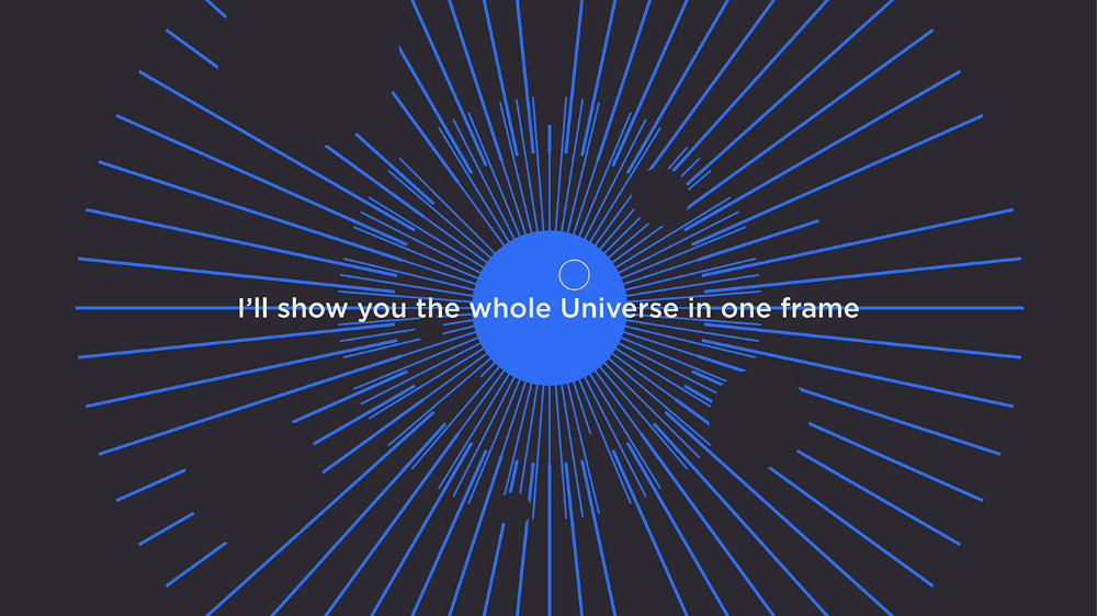 The image features a dynamic, radial burst design using thin lines emanating from a central point, creating a sense of energy and focus. The visual language is modern and abstract, relying heavily on line work to guide the viewer's eye toward the center. It conveys a feeling of vastness contained within a single frame.