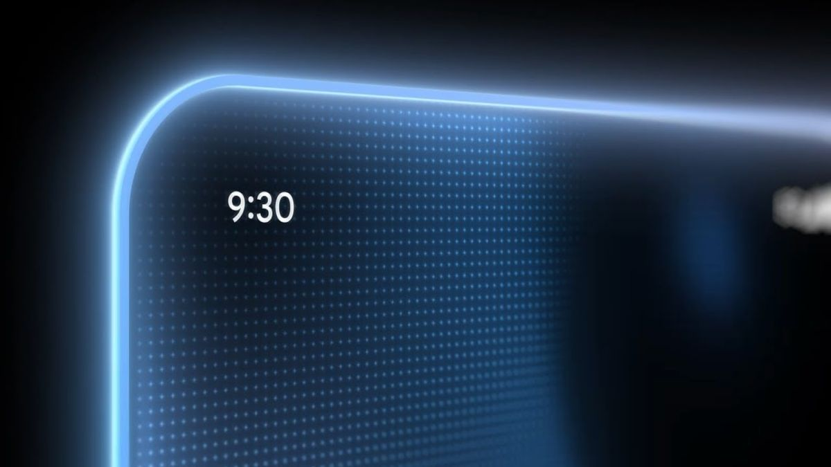 The image presents a clean, futuristic digital display characterized by soft blue neon outlines and a dark background. The design emphasizes minimalism and a high-tech, modern interface aesthetic.