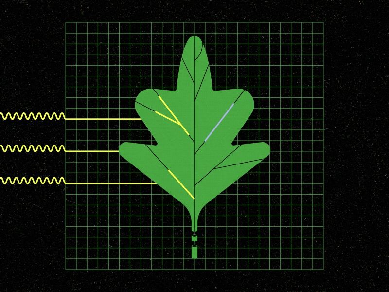 This design effectively juxtaposes organic forms, like the stylized leaf, against a strict geometric grid and dynamic data lines. The visual language blends natural elements with technical precision, creating a clean yet intriguing sense of scientific or futuristic exploration.