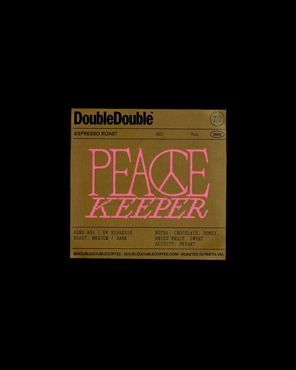 A vintage-inspired coffee label featuring bold, retro typography with a peace symbol integrated into the wordmark. The design employs a warm, earthy color palette with a distressed, screen-printed aesthetic that evokes 1970s counterculture and artisanal coffee culture.