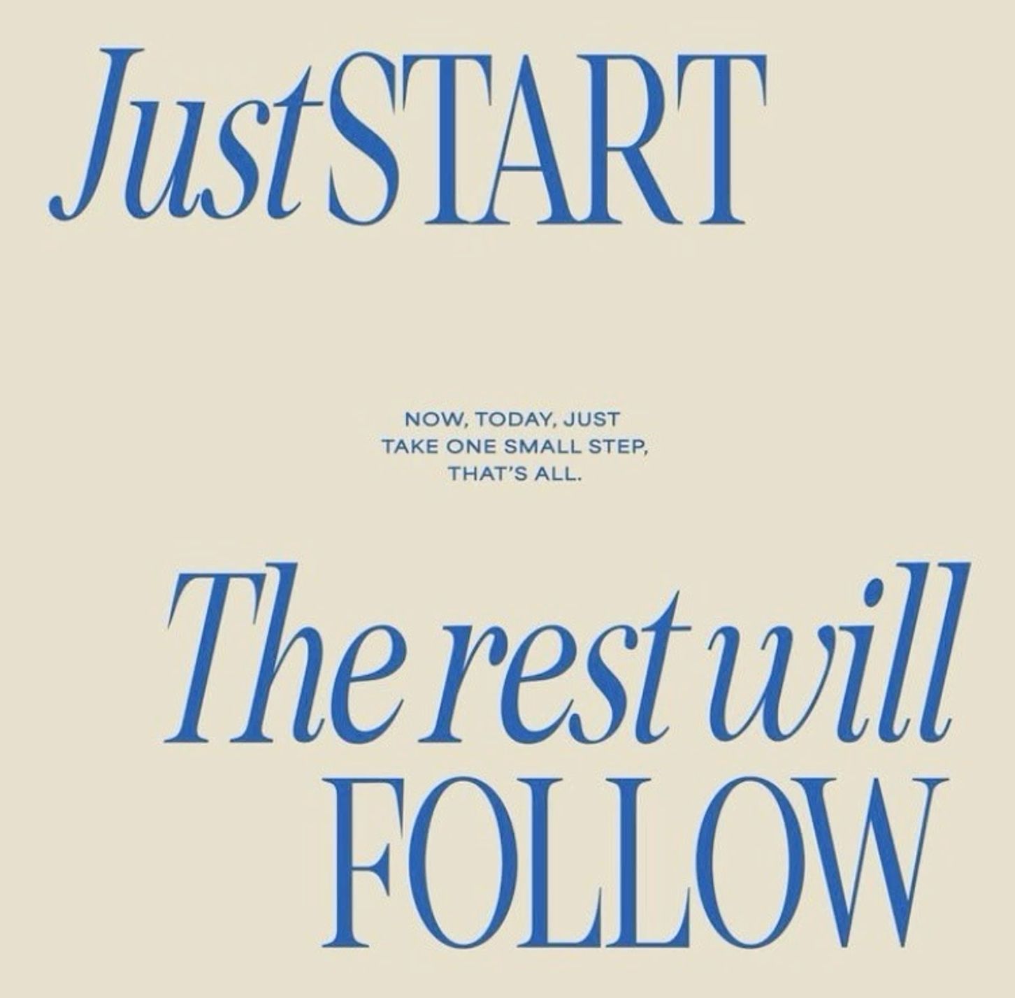This is a clean, minimalist typographic design utilizing a simple sans-serif typeface to convey a message of encouragement and initiation. The layout is spacious, allowing the large text elements to dominate and create a sense of calm authority.
