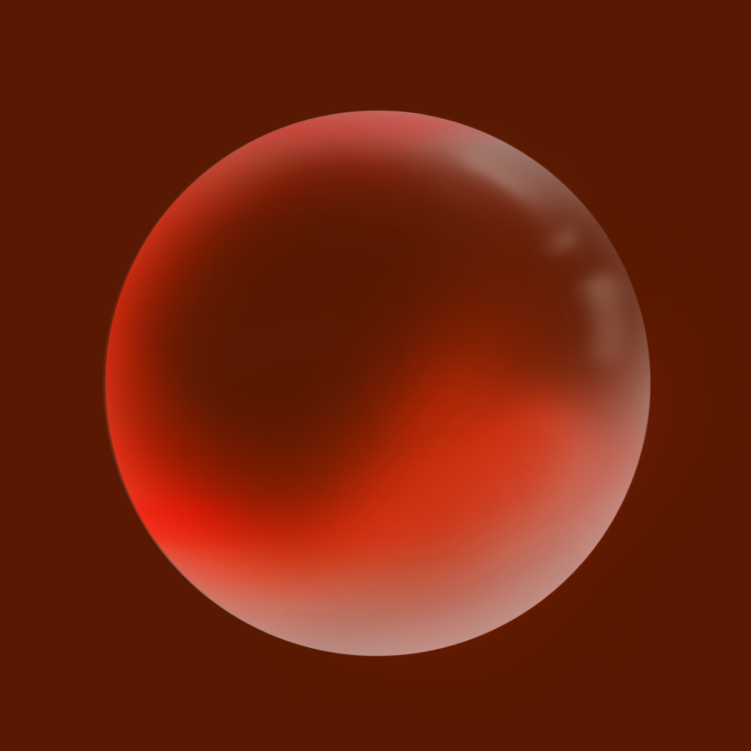 This image features a smooth, volumetric sphere rendered with a soft gradient, giving it a liquid or planetary quality. The design relies on subtle tonal shifts between deep reds and warm oranges to create depth and luminosity against a muted background. The overall effect is serene yet intense, focusing entirely on the interplay of light and color.