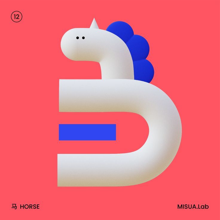 This design features a clean, minimalist illustration of a stylized horse or letter 'S' rendered in smooth, rounded forms. The visual language relies on simple shapes and a high-contrast pairing of soft white and vibrant blue against a warm coral background, creating a modern and whimsical feel.