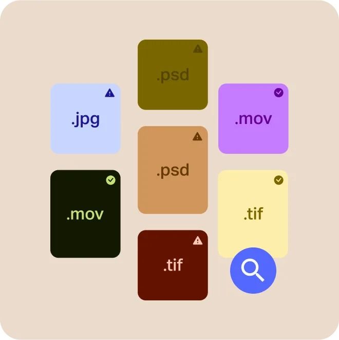 This image displays a clean, modern user interface design utilizing a muted color palette and a tiled layout to categorize digital files. The visual language is flat, organized, and professional, suggesting an asset management or file browser function. It achieves a calm yet functional aesthetic through careful selection of soft earth tones and pastels.