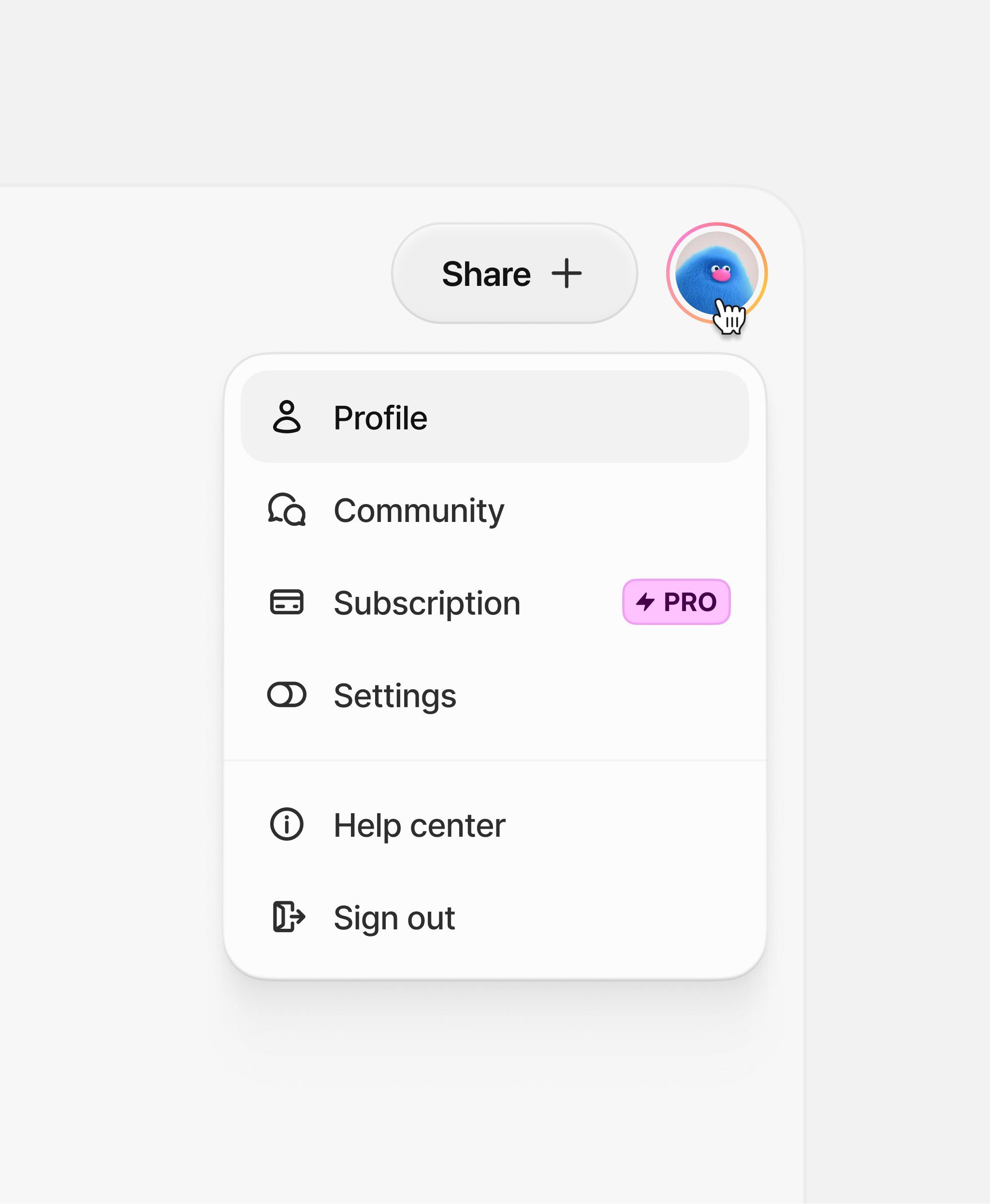 A clean, minimalist mobile menu interface featuring a vertical list of navigation options with subtle iconography. The design employs a soft, modern aesthetic with rounded corners, light shadows, and a neutral color scheme that emphasizes usability and accessibility.